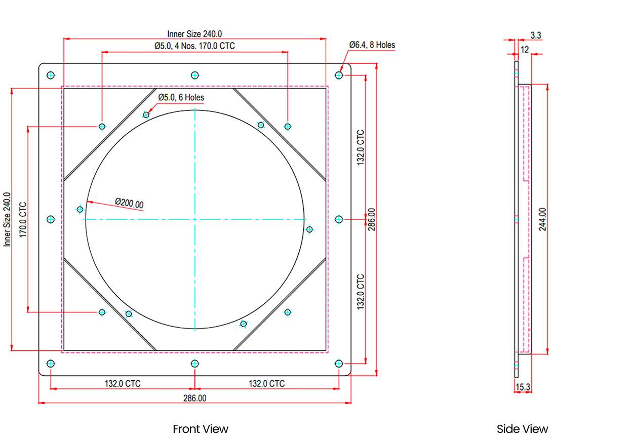 Suitable for cooling fan 8°Sq. 220mm x 220mm × 60mm