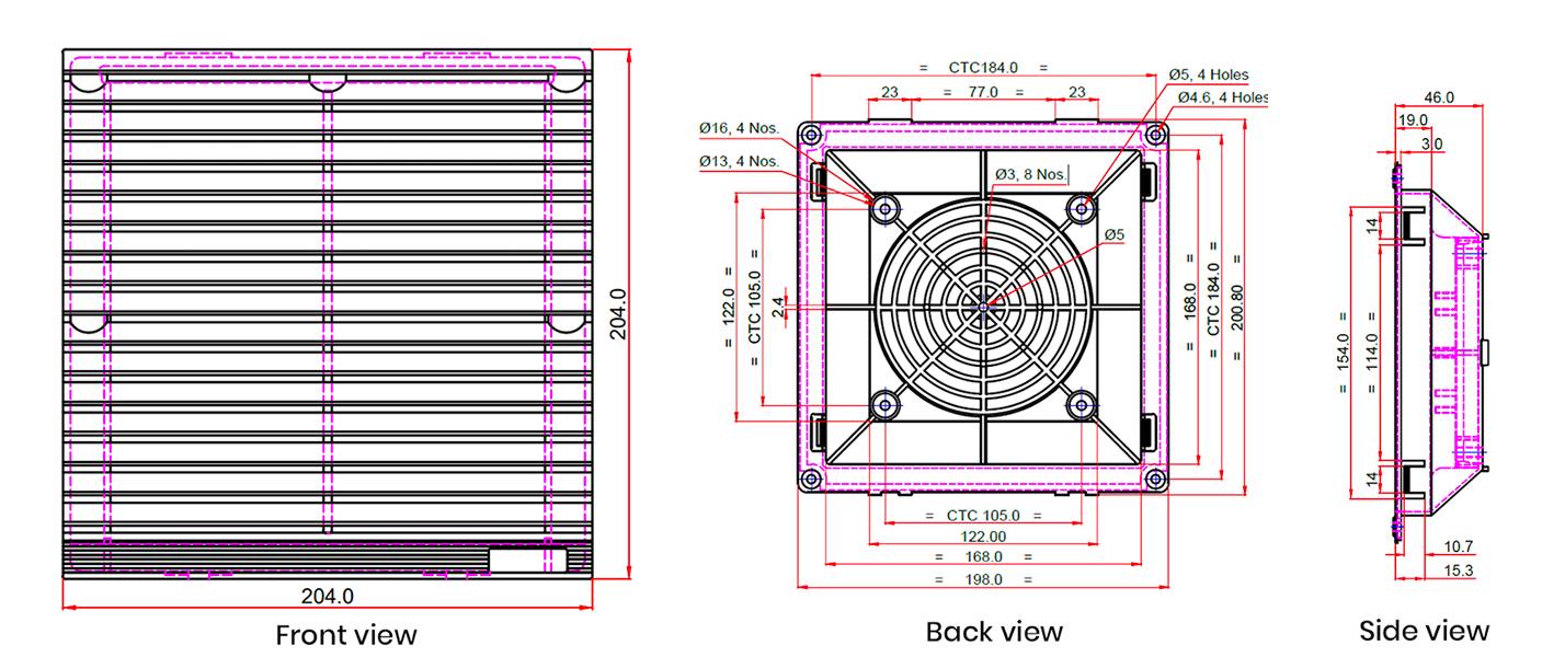 The ETAV-02 Air Vent (Snap Fit) is an innovative product that enhances the distribution of air within electronics enclosures, HVAC units and industrial cabinets. As a fully assembled snap-in fan filter unit, it eliminates the hazards of heat, dust and airflow obstruction while significantly improving the cooling capacity of the structure.