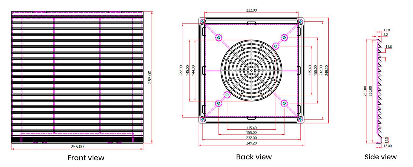 Size 255 mm x 255 mm(Snap fit doom type)