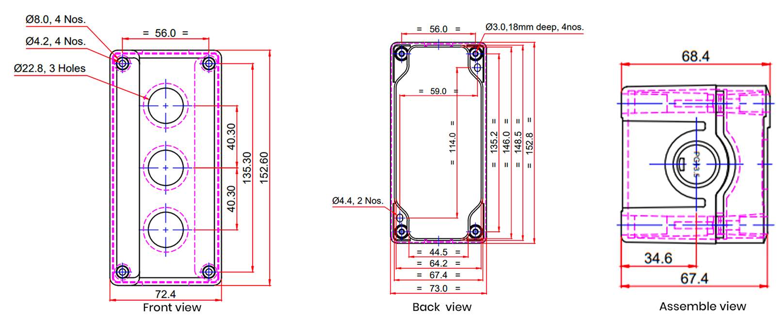 Size 153mm x 73mm x 68 mm